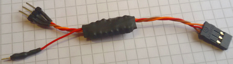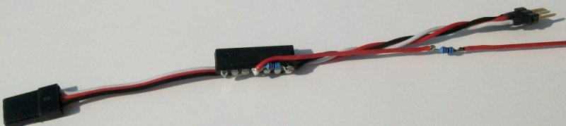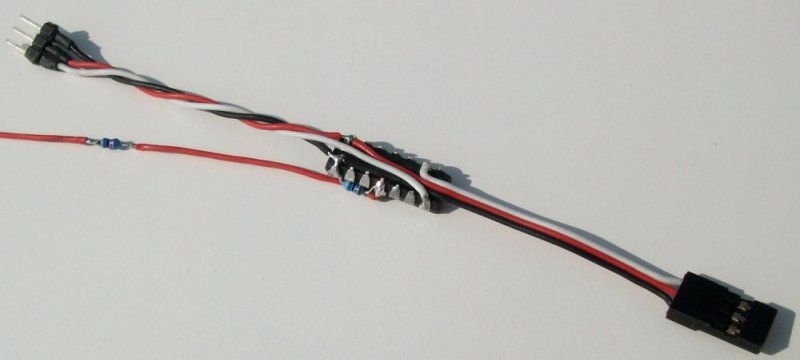 Mit Servokabeln versehen, wird der TINY-MPP einfach zwischen Empfänger und Regler gesteckt.